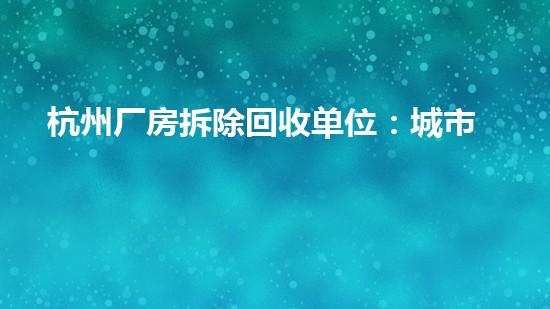 杭州厂房拆除回收单位:城市更新中的专业与价值重塑