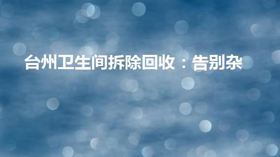 台州卫生间拆除回收:告别杂乱,开启重塑与资源再生的智慧之旅