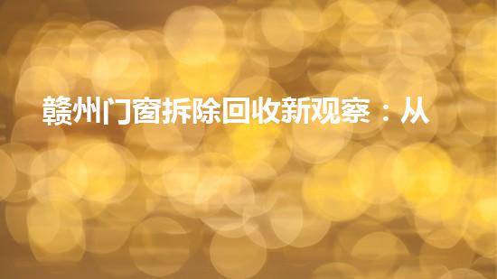 当一栋建筑迎来新生,当一户家庭启动焕新装修,那些被下来的旧门窗,它们的命运将走向何方?是随意丢弃角落成为建筑垃圾,还是经过资深的经过,开启一段资源生的旅程?在赣州这座快速进步的都市里,门窗回收早已不是简单的“一拆了之”,它正变为一个融合环保、经济与都市美学的精细产业。我们将讨论赣州门窗拆除回收行业的现状、挑战与刨析其如何成为都市可持续进步中不可或缺的一环。