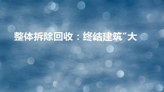 总而言之,整体拆除回收远不止是一项,它代表了一种面向未来的城市发展哲学。在资源约束碳中和目标的全球背景下,将建筑生命周期终点转化为资源循环起能力,将成为衡量城市可持续发展水平的关键标尺。