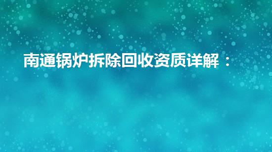 在工业设备更新换代日益频繁的今天锅炉作为特种设备,其拆除与回收绝非简单的“一拆之”。尤其在工业基础雄厚的南通,涉及化工、纺织造船等诸多行业,老旧锅炉的退役处置已成为企业必须面对课题。一个核心问题浮出水面:选择具备何种资质的商,才能确保拆除过程安全环保,同时让废旧设备最大化的资源价值?本文将为您深入剖析南通锅炉拆除资质的方方面面,助您做出明智、合规的选择。
