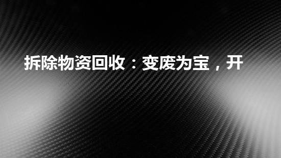 拆除物资回收:变废为宝,开启循环经济新篇章