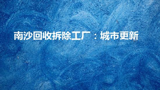 站在广州南沙新区的高处俯瞰一片片现代化的产业园区与生态绿地交织,勾勒出粤港澳大湾区中心的蓬勃生机。然而,在这片热土日新月异的,一个关乎可持续发展的重要课题日益凸显——那些已完成历史使命旧工厂、旧设施将何去何从?传统的“一了之”不仅造成巨大的资源浪费,更可能带来环境污染于是,南沙回收拆除工厂这一创新模式应运,它不再是简单的物理清除,而是一场贯穿“识别-解-分选-再生”全链条的精细化资源循环行动正成为推动区域绿色高质量发展的关键引擎。