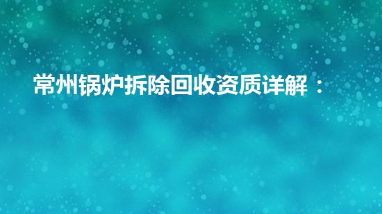 常州锅炉拆除回收资质详解:专业选择与合规指南