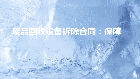 废品回收设备拆除合同:保障安全与的关键步骤在循环经济日益受到重视的今天,废回收行业扮演着至关重要的角色。然而,随着技术升级、场地或设备老化,废品回收设备拆除成为了许多必须面对的现实课题。这并非简单的拆...