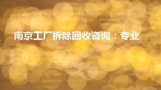 南京工厂拆除回收咨询:专业指南助您处置资产