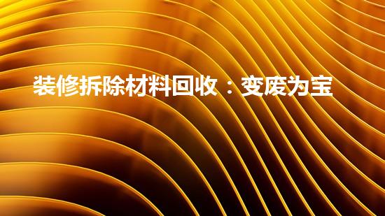 装修拆除材料回收:变废为宝,绿色装修新篇章当您敲下旧房改造的第一,或为新家设计而拆除隔墙时,是否曾想过那些堆积如山的碎砖烂瓦、旧门窗、废,并非仅仅是需要付费清运的“建筑垃圾”?在可持续发展日益深入人心...